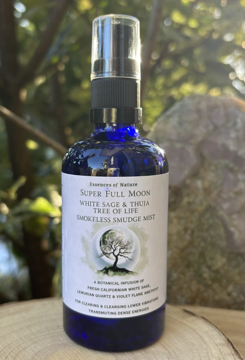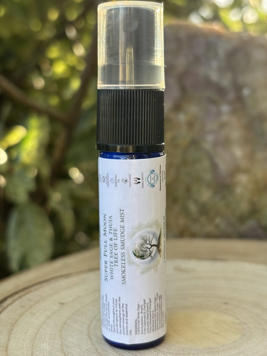 Essence of Nature’s Super Full Moon Californian White Sage & Thuja Smokeless Smudge Mist is a Vibrational Essence Spray is made from:
